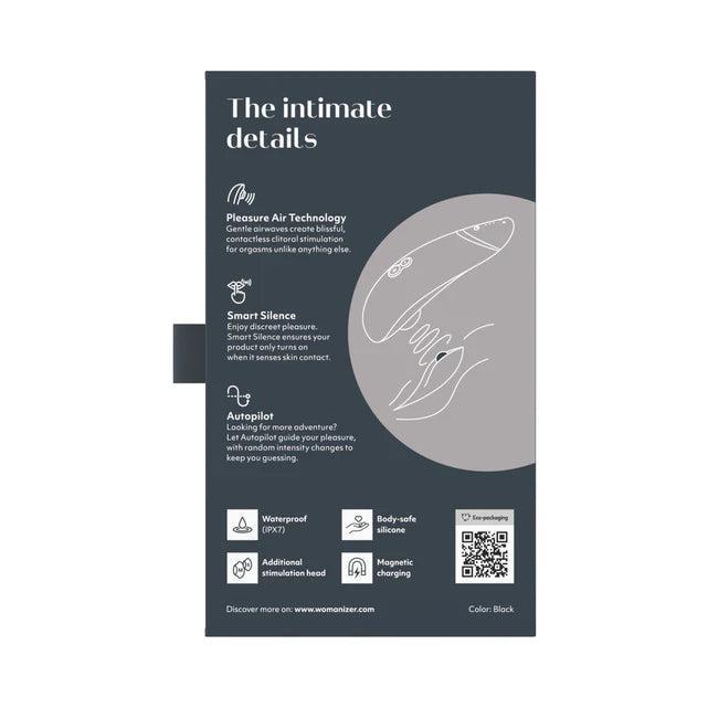 Pleasure Air Technology: Made for you and your body: All WOMANIZER products feature a unique innovation called Pleasure Air Technology. Why is it so special? Your clitoris is stimulated without direct contact. Gentle air vibrations suck and massage together to provide an unprecedented orgasmic feeling.